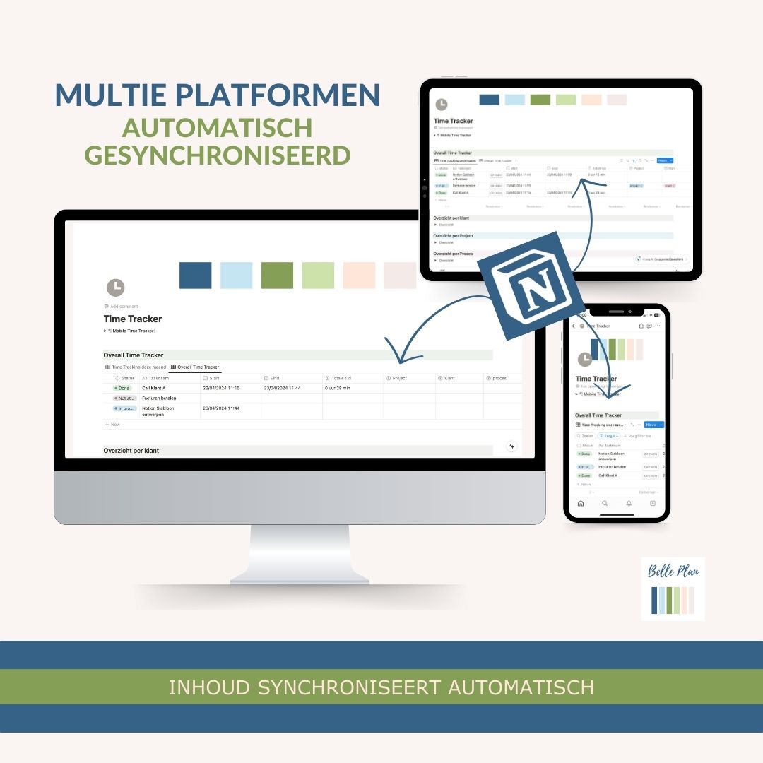 Krijg inzicht in waar je echt je tijd aan besteed met de Time Tracker Notion Sjabloon van Belle-Plan.